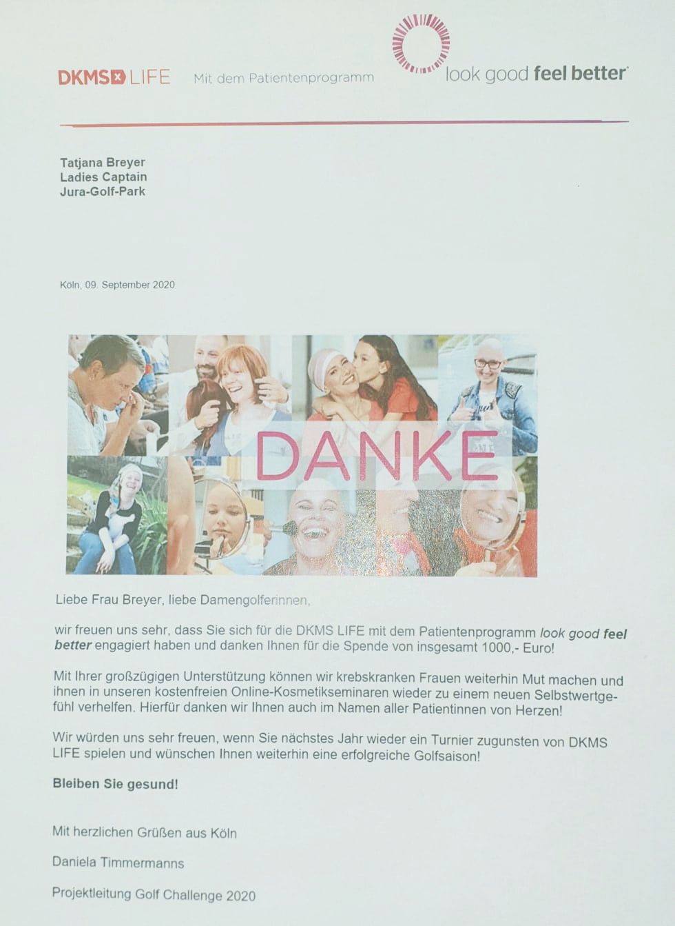 Trotz guter Ergebnisse war das Golfspiel jedoch an diesem Tag eher zweitrangig, denn die Startgebühren sowie die Einnahmen der Tombola gingen komplett an die DKMS Life. Und wow... 15 Teilnehmerinnen spendeten 555,00 €! Doch dem nicht genug, dieser Betrag wurde von dem Ingenieurbüro Winfried Breyer kurzerhand auf 800€ aufgestockt und eine Teilnehmerin spendete spontan auch noch einmal 100€. Wahnsinn, 900 € für einen guten Zweck an einem Golfnachmittag!