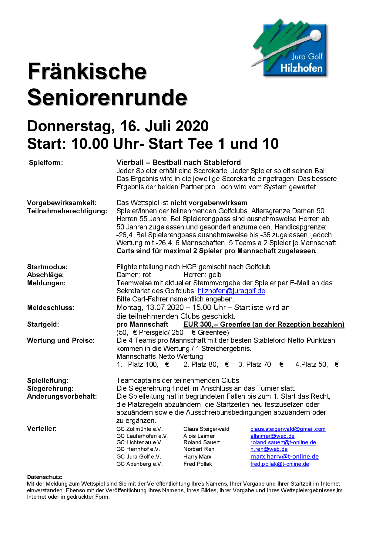 Die fränkische Seniorenrunde spielt in der Saison 2021 auf folgenden Plätzen: