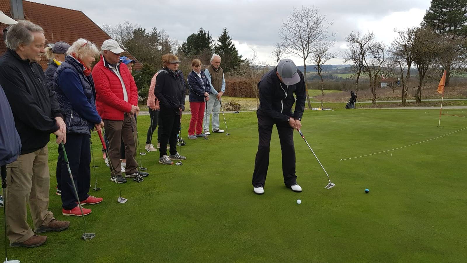 Senior Captain Christa Lang konnte hierfür unseren Pro "Colin Hodgson" gewinnen, so dass man sich gleich mit der Materie Golf und Putten beschäftigte.