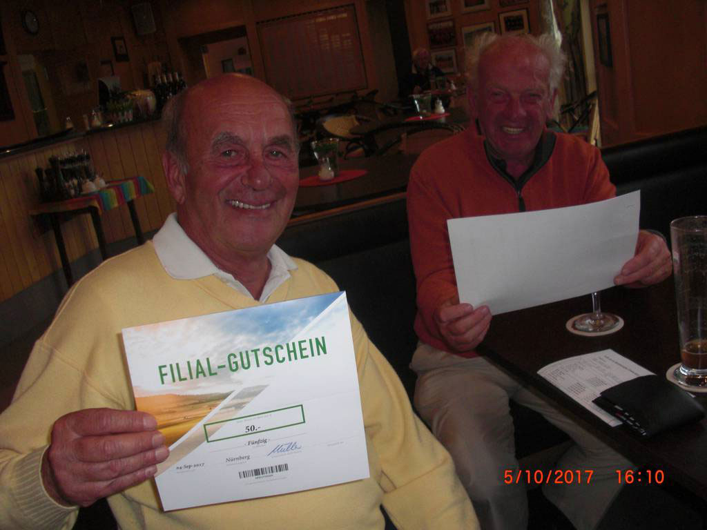 Beim Finale im September wurden die Sieger/innen mit großzügigen Gutscheinen belohnt. Die Bruttowertung gewann Ingeborg Sachs, Nettosieger wurde Karl Sauerbrey und den zweiten Platz teilten sich Alfred Sachs und William Mattingly.
