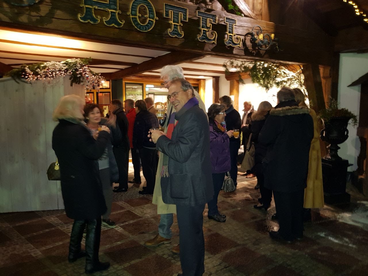 Am letzten Donnerstag im November trafen sich die B&B’s zur Weihnachtsfeier. Der gerade einsetzende winterliche Schneefall hatte schon die Bäume verzuckert, am Eingang gab es Punsch und Plätzchen, die Weihnachtsstimmung war perfekt.