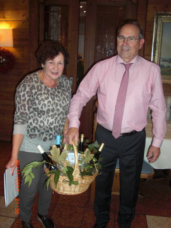 Hieran knüpfte Günther Zink bei seiner Ansprache und erklärte die Herkunft und sonstiges wissenswertes zum Inhalt eines Geschenkkorbes, der dann den bisherigen Organisatoren der B&B’s zum Dank und zum Abschied überreicht wurde. Bei Dessert und Kaffee wurde weiter fröhlich geplaudert.