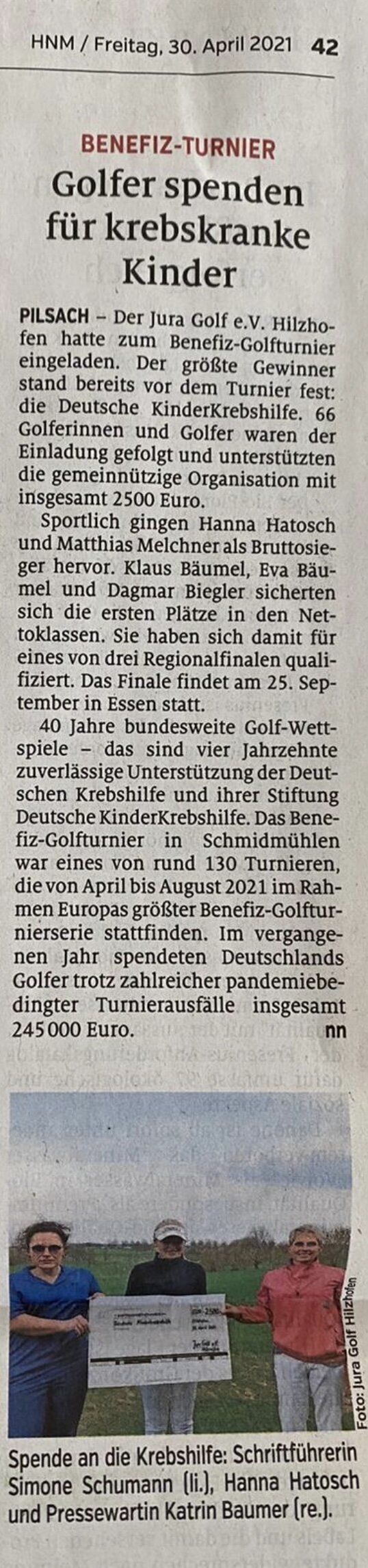 Im Bericht geht es um das Turnier und die fantastische Spendensumme von 2.500 Euro, die komplett der Deutschen Krebshilfe zugutekommt!